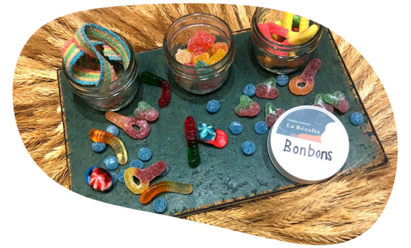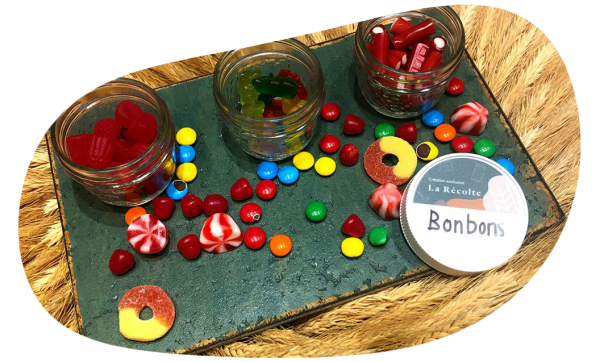 Nous offrons une grande variété de produits en vrac pour vos événements. Remplacez les éternelles portions individuelles et emballages uniques par de délicieuses collations santé (ou pas!) en vrac. Faites un virage vert et gourmand pour vos événements sportifs, culturels ou scolaires. En plus des produits en vrac, nous proposons également des assortiments de produits. Qui ne rêve pas d'un bar à bonbons à sa fête? Avec La Récolte, c'est possible! Voyez nos différentes propositions: